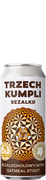 Bezalkoholowy Oatmeal Stout, czyli Stout Owsiany to ciemne, lekko palone piwo, o aksamitnej konsystencji pochodzącej z płatków owsianych dodatkowo podkreślonej azotem, którym zamiast dwutlenku węgla wysyciliśmy to piwo. Nalewaj je z mocnym impetem, pionowo przechylając butelkę i obserwuj piękną kaskadę drobnych bąbelków oraz ciesz się kremową pianą. Trzech Kumpli grają unplugged!