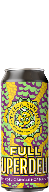 Wnosi do piwa niezwykle soczysty, słodki i wielowarstwowy charakter. Dominuje aromat dojrzałego mango i cytrusów, a niektórzy wyczuwają także agrest, winogrona i delikatne nuty nafty. To chmiel, który świetnie odnajduje się w piwach typu single hop i w Full Superdelic oczywiście użyliśmy tylko tej odmiany. Sypnęliśmy też sporą ilość płatków pszennych i owsianych, dzięki czemu piwo zyskało gładką i pełną teksturę. Całość uzupełnia łagodna i przyjemna goryczka, która podkreśla soczystość profilu chmielowego.