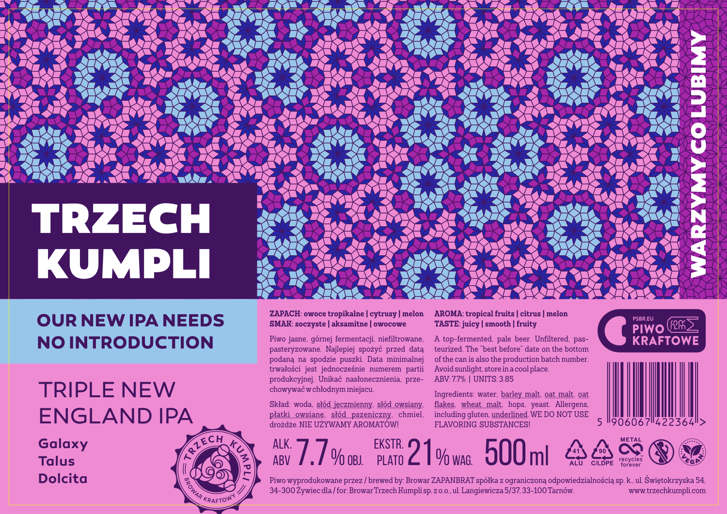 Triple New England IPAJuż od jakiegoś czasu nosiliśmy się z zamiarem uwarzenia naprawdę mocnego i aromatycznego IPA. Nasza ostatnia nowość w tym stylu to 2021 rok, więc już chwila minęła. Czekanie jednak zakończone – mamy to!