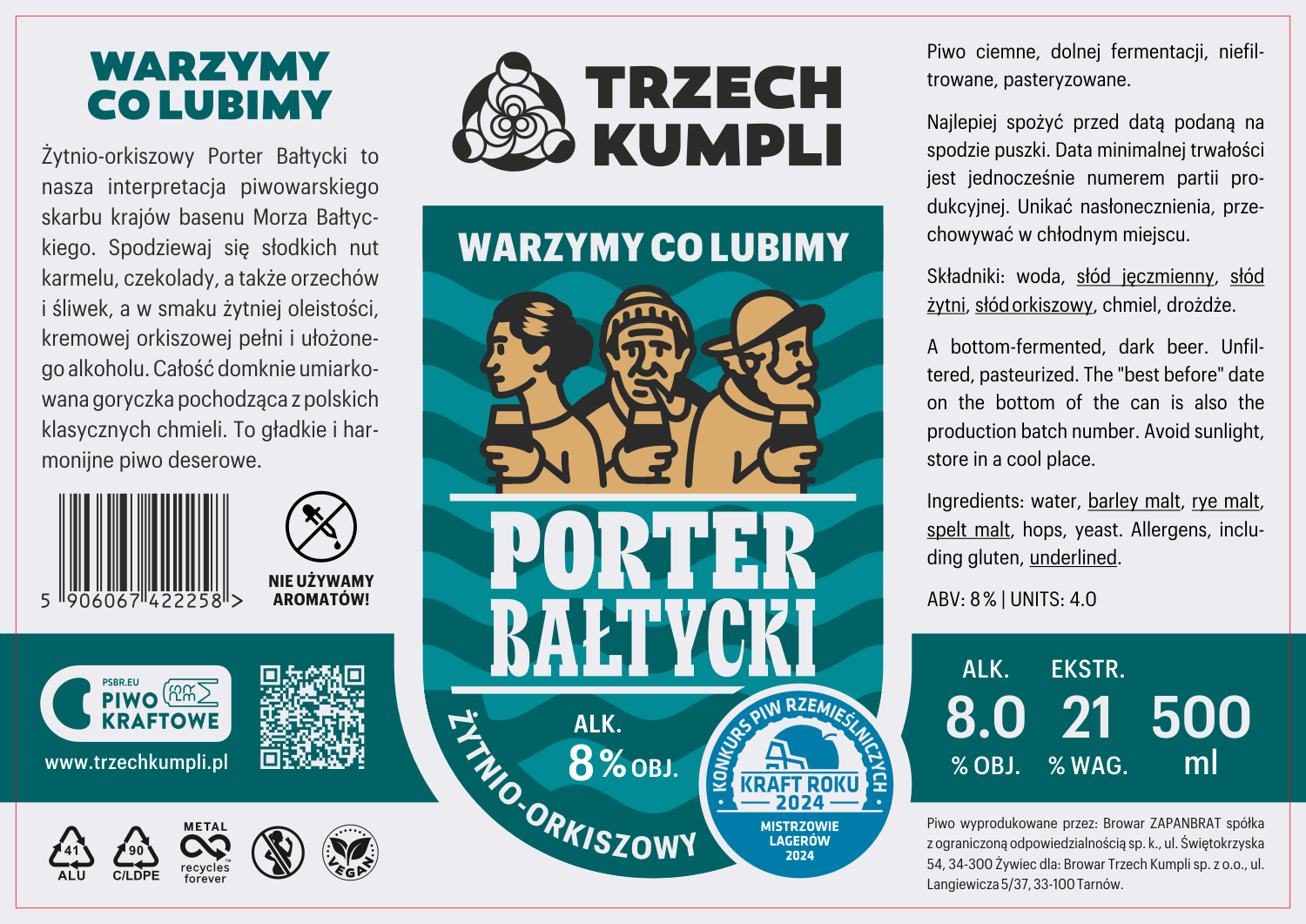 To Porter Bałtycki różniący się od naszych pozostałych wersji – bardziej „brązowy” w profilu, oparty na chlebie, karmelu i suszonych owocach. Idealnie uzupełnia nasze portfolio i pokazuje inne oblicze stylu.